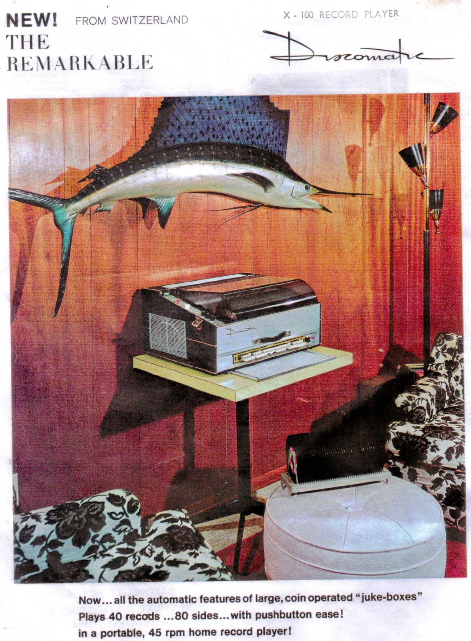 Neils portable juke box -The Discomatic. Made in Switzerland in the 1961 It cost 69 Guineas new, which was a tidy sum back then. Great fish |
